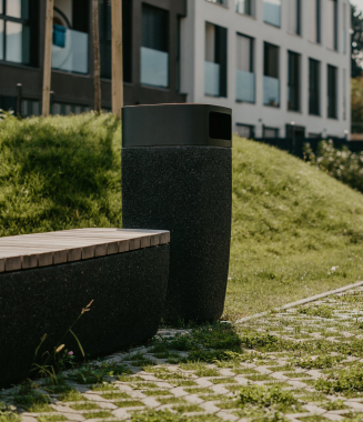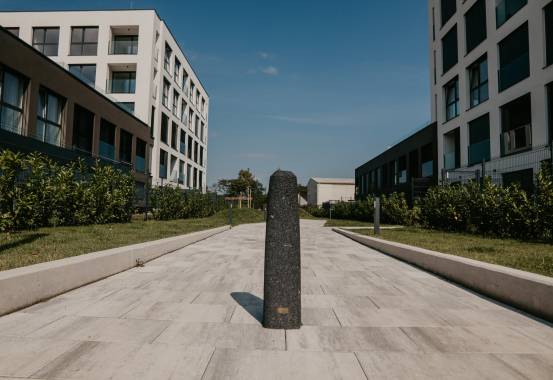 A modern neighborhood in a peaceful setting, designed as a closed complex with thoughtfully positioned buildings. It offers apartments ranging from studios to four-room units, each with its own loggia, terrace, or atrium. The outdoor areas are beautifully complemented by urban equipment from the Bien line, which offers a wide selection of colors and elements, making it easy for the designer to integrate them into the project.