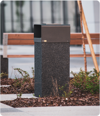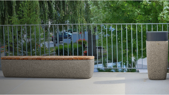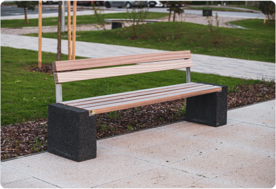 The initial plan included custom-made urban furniture, which typically results in high production costs. Fortunately, they discovered our Quadro product line, which met the design requirements and can also be manufactured using crushed Nero Ebano marble. Combined with tropical wood, it integrates seamlessly with the overall architectural concept of the complex.